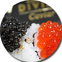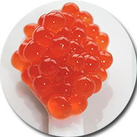 Saumon Coho Ikura certifié biologique, un luxe délicieux. Reconnu comme durable par OceanWise™ et recommandé « Vert » MEILLEUR CHOIX par SeaChoice & Monterey Bay Aquarium’s Seafood Watch®. Un caviar délicat au goût de beurre et de noisette avec une saveur fraîche de l’océan et une touche de sel. Aussi autres variétés disponibles.